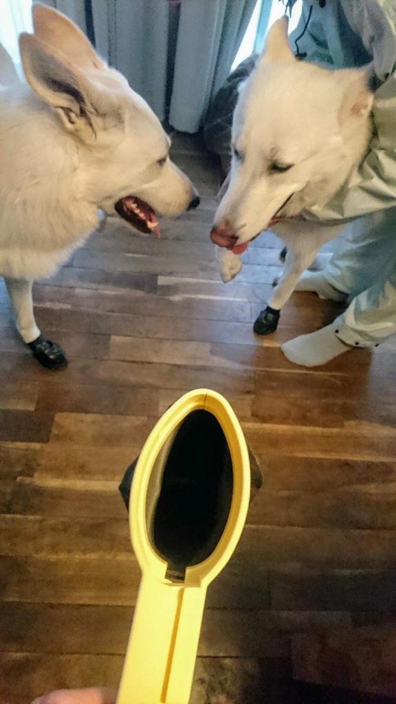 お泊りに行った時に毛が飛び散らないようにマナーで着るんだって~☆
