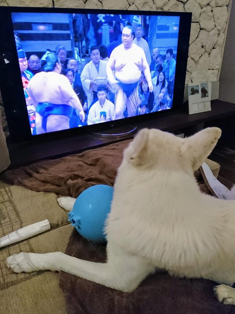 かぁさんがお仕事から帰って来てから、録画でいっしょに大相撲観戦♪
