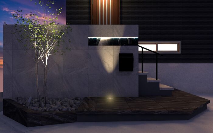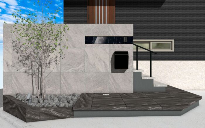 玄関ドアの前に目隠しの塀がある事で、家の中のプライバシーも守れます。
